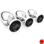Ce set comprend trois plugs anaux de tailles variées (petit, moyen et grand), conçus pour s’adapter progressivement à vos besoins. Chaque pièce est fabriquée en métal poli avec une surface lisse pour un confort optimal. L’ornement en cristal ajoute une touche d’élégance, rendant ce produit aussi esthétique qu’efficace.