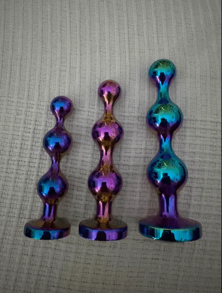 Illuminez vos moments intimes avec ce stimulateur de prostate multicolore en 3 pièces. En acier inoxydable, il offre un design élégant et des tailles progressives pour un confort optimal.